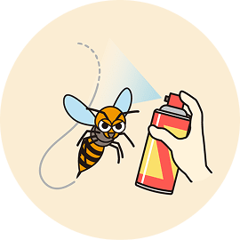ハチ駆除スプレーは手軽に使えますが、反撃される可能性があり非常に危険です。