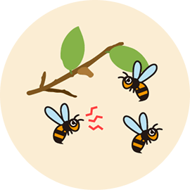 駆除時に巣の外にいた働きバチの帰る巣がない場合、攻撃的になります。数日間にわたって巣のあった場所を飛び回ることがあります。