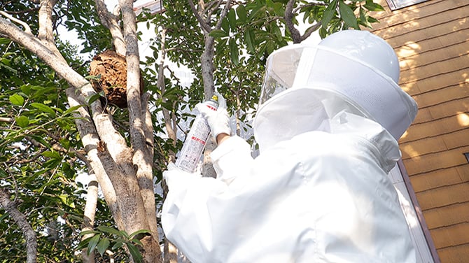 ハチ駆除専用の薬剤を使用し、安全にハチを駆除します。特にスズメバチやアシナガバチには、即効性のある強力な薬剤を用いて短時間で対処します。