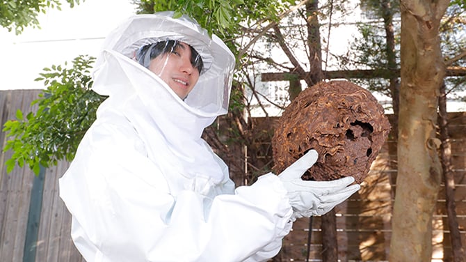 薬剤でハチを駆除した後、巣を完全に撤去します。巣を残すと害獣や害虫がわく恐れがあります。